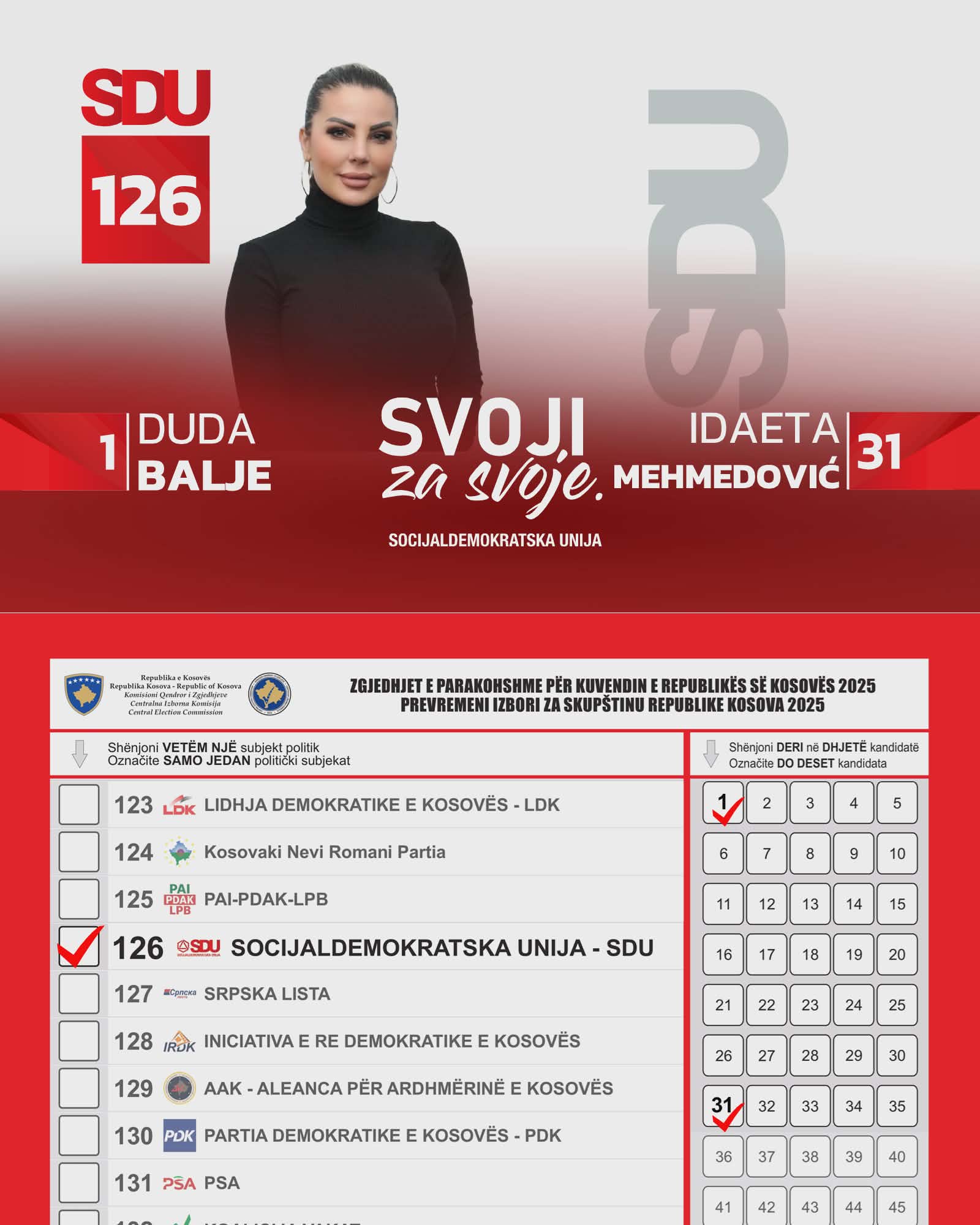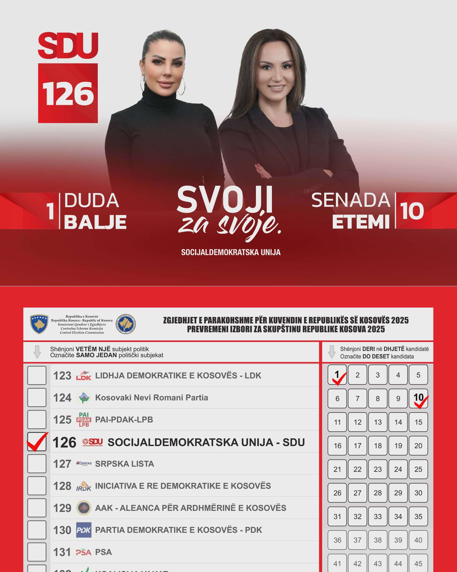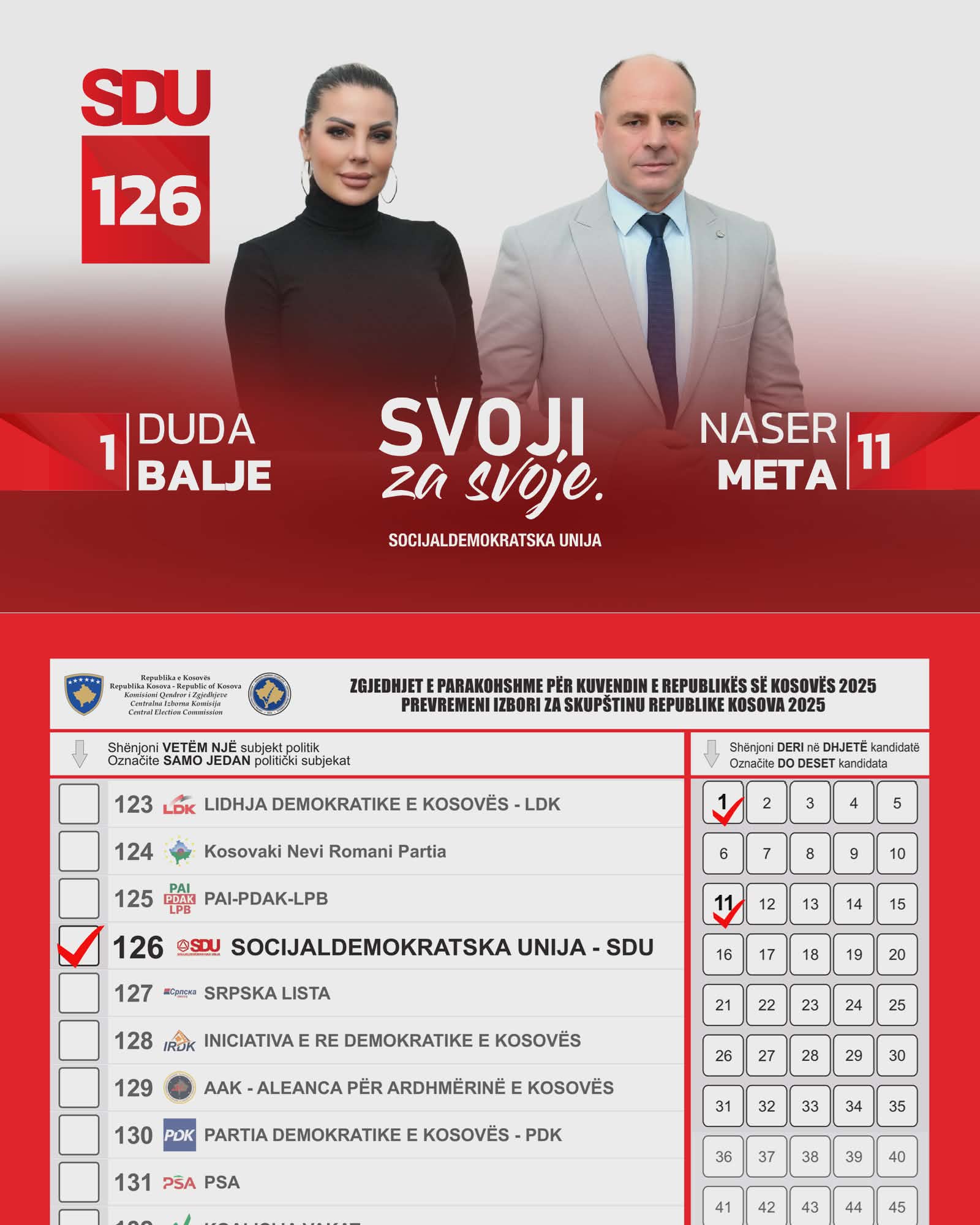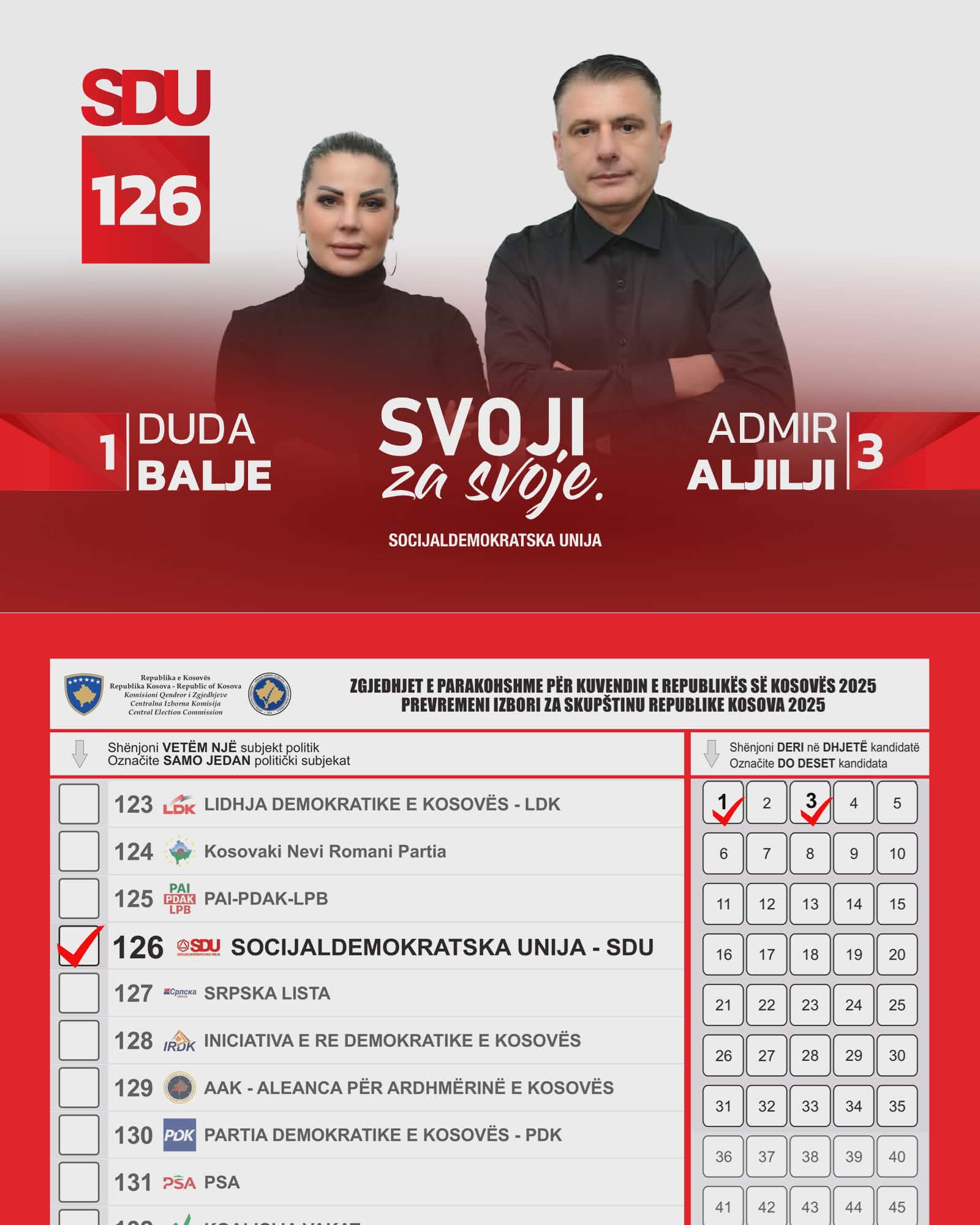 Socijaldemokratska unija je socijaldemokratske orijentacije, stranka lijevog centra i predstavlja skup slobodnih, ravnopravnih i odgovornih članova.